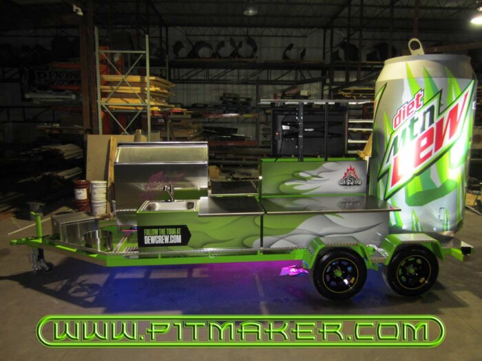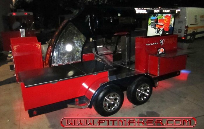 Our Pitmaker BBQ custom built trailers are not for the average backyard pitmasters. These custom built trailers are for king of the jungle. When we begin to build a custom made pit, we consider every element necessary to make it epic — grills, graphics, storage, and entertainment. We challenge ourselves to think forward and create something unique and powerful.