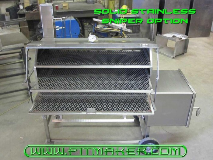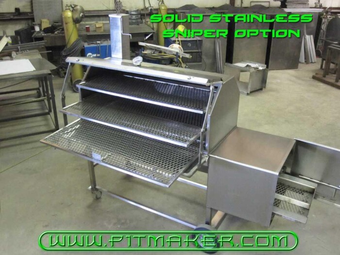 **The Firebox or the entire PM-48 Sniper BBQ Pit can be made out of solid “corrosion-proof” 304 stainless steel. Please feel free to call or email for quotes on custom options